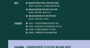 [자료집] 이재명정부 사회연대경제 정책제안연속토론회연속 토론회 : 이재명 정부 사회연대경제 정책제안 1차 토론회 : 2025.10.29.(수), 장소 국회의원회관 제2간담회의실 주요내용 : 협동조합 2차 토론회 : 2025.11.6.(목),장소 국회의원회관 제9간담회의실 주요내용 : 사회연대경제 자금조달 활성화 방안 …관리자 10-30 -