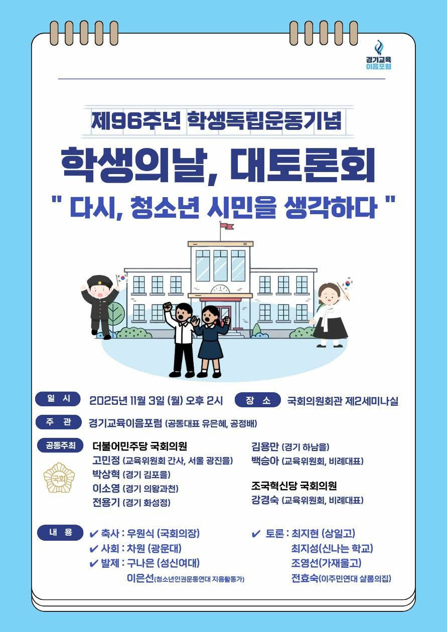 제96주년 학생독립운동기념 학생의 날, 대토론회(다시, 청소년 시민을 생각하다.)
